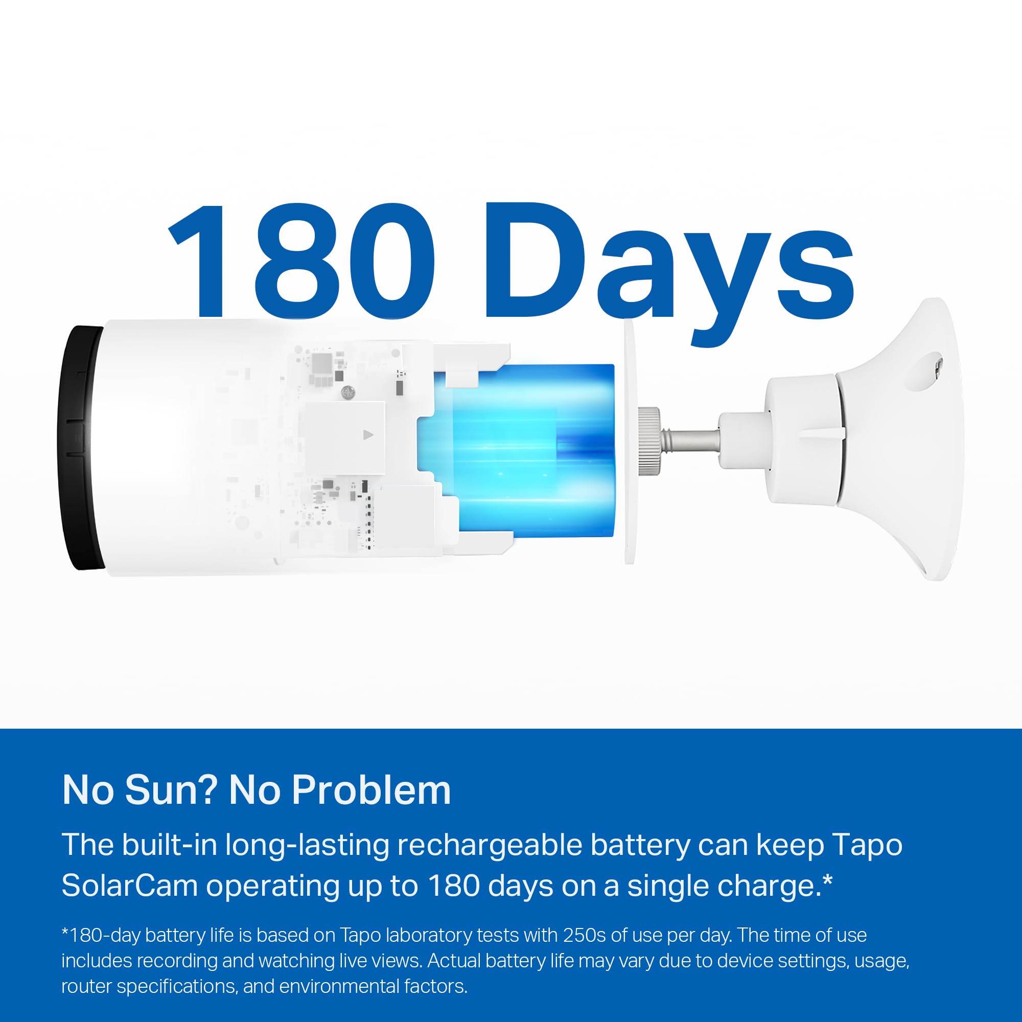 No sun? No problem—the built-in long-lasting rechargeable battery ensures power for up to 180 days2 on a single charge, guaranteeing uninterrupted performance.
