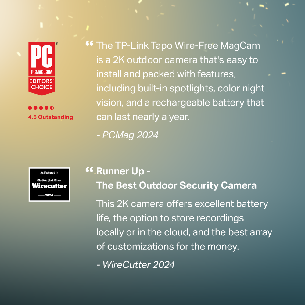 “Long battery life and simple installation make the TP-Link Tapo Wire-Free MagCam an excellent choice for monitoring outdoor areas.”